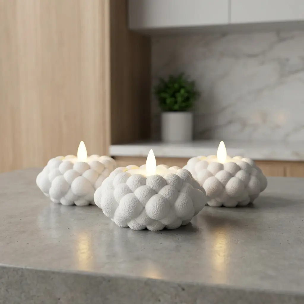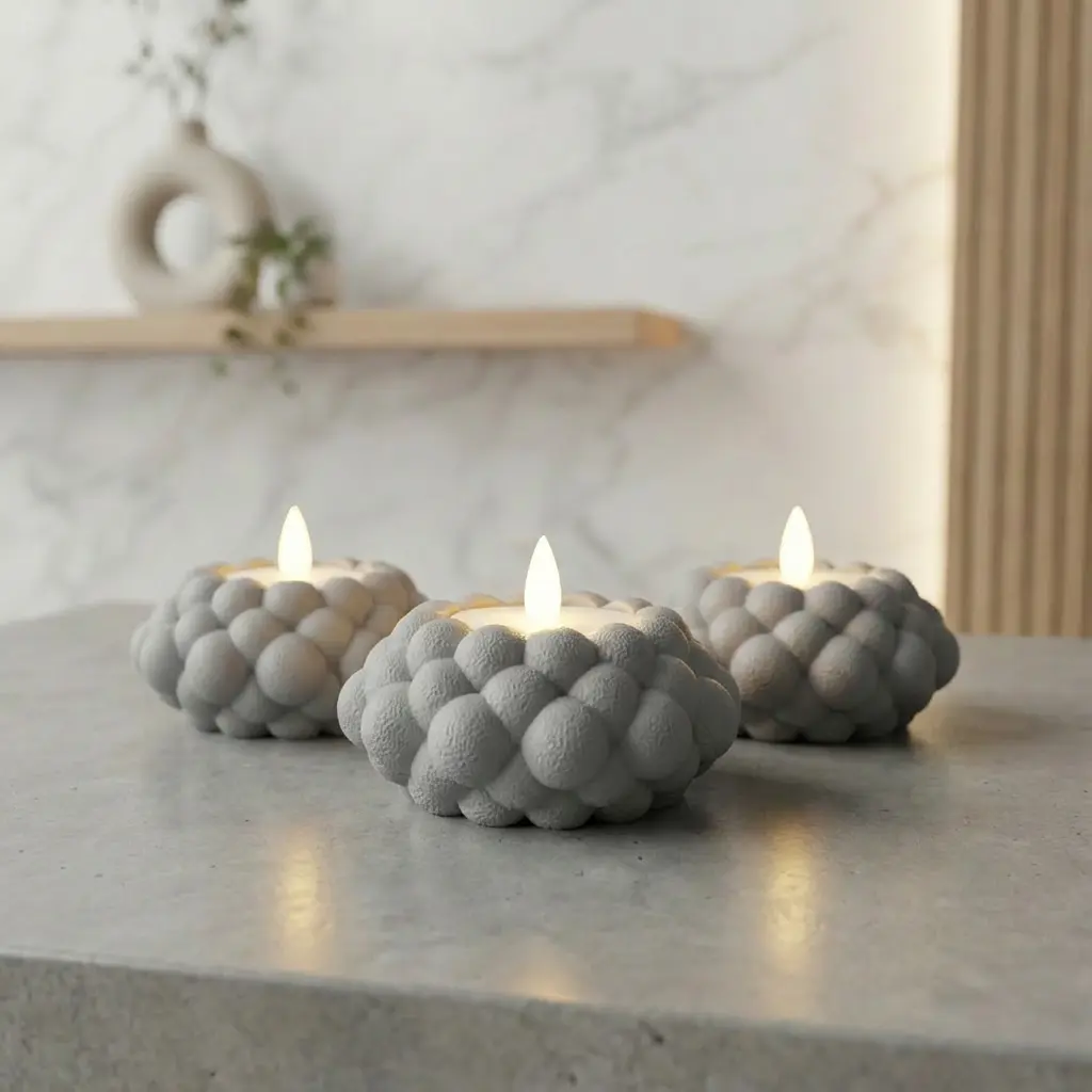 Skulpturaler Teelichthalter mit weich modellierter Knotenstruktur und ruhigem, warmem Lichtspiel. NUDO verbindet organisches Soft-Design mit zeitloser Ästhetik und setzt stilvolle Akzente in modernen Wohnräumen – auch unbeleuchtet ein echtes Designobjekt.