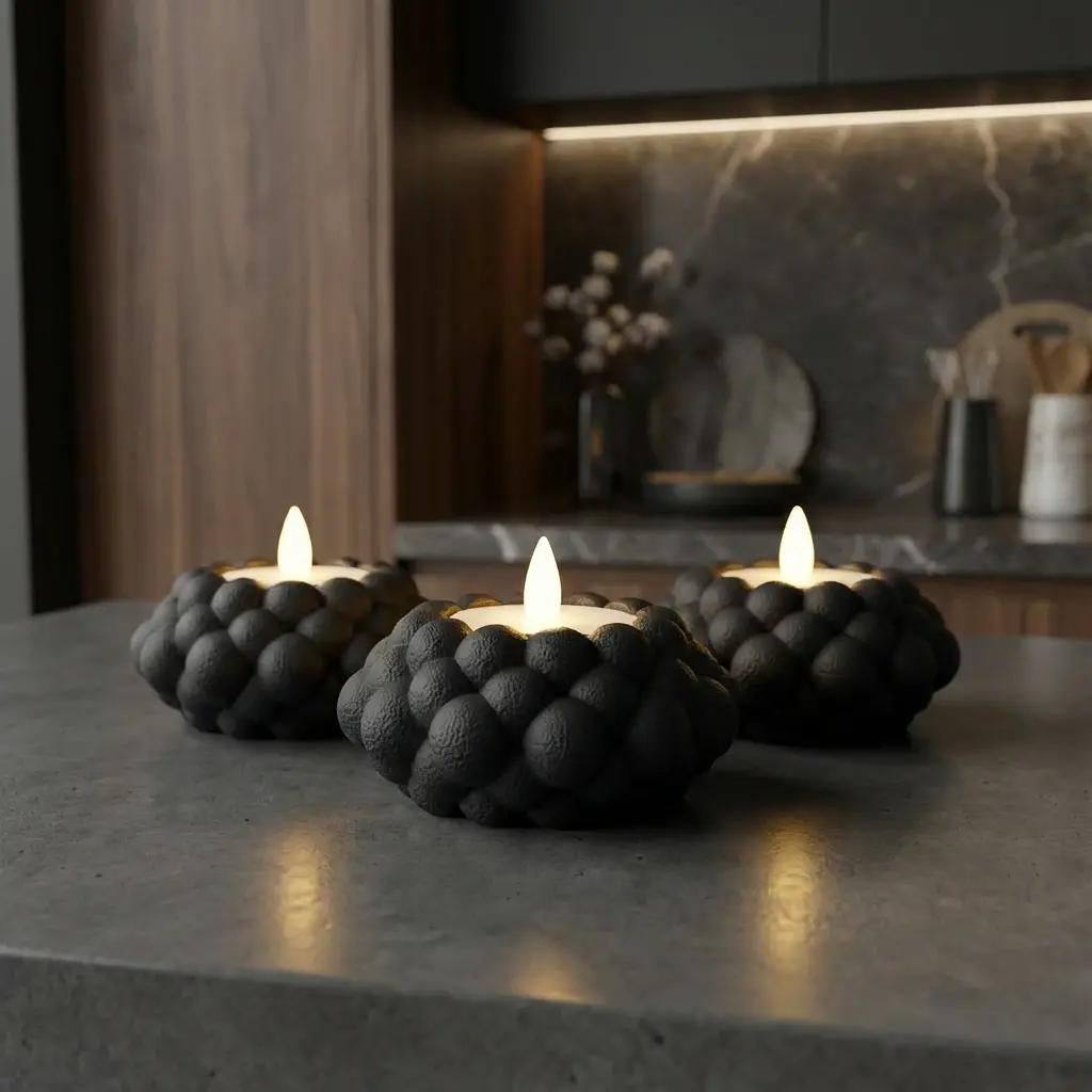 Durch seine organische Formensprache wirkt NUDO bewusst ruhig und ausgewogen. Das zentrale Teelicht wird sanft eingefasst und sorgt für ein harmonisches Lichtspiel, das Wohnräume, Tische oder Sideboards atmosphärisch akzentuiert.